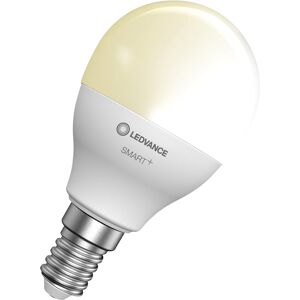 Ampoule LED connectée forme sphérique avec technologie Bluetooth. Caractéristiques produit: Contrôlable via l'application LEDVANCE SMART+ (avec minimum Android 6.0 ou iOS 11.0), Gradable, Protocole réseau: Bluetooth, Durée de vie: jusqu'à 20 000 h, Pour une fonctionnalité complète avec contrôle via une connexion Apple Home App à Apple TV (avec tvOS 10 ou version ultérieure) ou à un iPad (avec iOS 10 ou version ultérieure) requis, Votre maison connectée vous écoute - utilisez l'Assistant Google et contrôlez votre éclairage via la commande vocale, Avantages produits: Contrôle sans fil via l'application, Facile à installer et à utiliser, Ne contient pas de mercure, Domaines d'application: Éclairage général, Intérieurs résidentiels, Professionnels (hôtels, bars, boutiques, etc.), Utilisation en extérieur, uniquement dans des luminaires appropriés, Données techniques: Longueur: 89,50 mm, Largeur: 46,50 mm, Diamètre: 46,50 mm, Poids net: 30 g, Socle: E14, Tension nominale: 240 V, Courant nominal: 45 mA, Puissance de mesure: 4,90 W, Consommation d'énergie: 5 kWh/1000, Température de couleur: 2700 K, Couleur de la lumière: Blanc chaud, Angle de rayonnement: 180 °, Faisceau lumineux: 470 lm, Restitution des couleurs: 80 CRI, Durée de vie: 15000 h, Classe d'efficacité énergétique: F, Avec variateur de lumière: Oui, EAN: 4058075485259