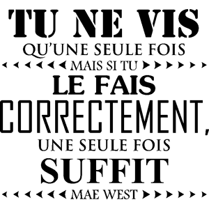 Des stickers muraux citations pour la déco ! Avec les stickers citation et ce sticker Tu ne vis qu'une seule fois - Mae W.est, vous pourrez enfin décorer l'intérieur de votre cuisine à votre guise avec leur aide ! Reveillez vous chaque matin en vous souvenant qu'une journée est un don du ciel et qu