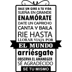 Des stickers muraux citations pour la déco ! Avec les stickers citation et ce Sticker citation Dale un giro a tu vida suena en grande enamorate, vous pourrez enfin décorer l'intérieur de votre cuisine à votre guise avec leur aide ! Adoptez un accueil chaleureux chez vous avec ce sticker Dale un gir