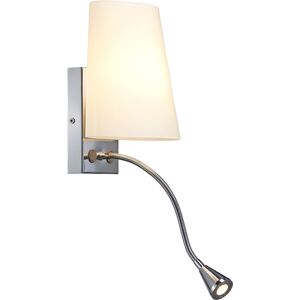 L’applique COUPA FLEX séduit par un mélange heureux d’acier chromé et de composants en verre et est équipée, en plus de la source de lumière principale, d’une liseuse d'une Power LED 1W en couleur d’éclairage blanc chaud. Deux interrupteurs adaptés au design global sont installés pour la commande individuelle des deux sources lumineuses. Grâce à l’angle de rayonnement sélectionné de la liseuse LED, celle-ci agit presque sans éblouissement et assure une lumière agréable et reposante sur l’utilisateur. Elle peut être orientée en conséquence grâce au bras flexible. Le support de lampe G9 derrière l'abat-jour principal, ainsi que le convertisseur LED déjà intégré rendent COUPA FLEX prête pour le raccordement direct à la tension secteur 230V. Ce luminaire contient des lampes LED intégrées.Données techniques: Nom du produit: COUPA FLEX, Couleur: chrome, Matière: Acier, Puissance en watts: 3.2 W, Lumineux/watt: 51 lm/W, Lumen: 140 lm, Température de couleur: 3000 Kelvin, CRI: 80, Source: QT14, Douille: G9, Nombre de douilles: 1, Classe de protection: I, Code IP: IP 20, Montage: En saillie, Détails de montage: Applique, Forme: conique, Longueur: 20 cm, Largeur: 12.5 cm, Hauteur: 23 cm, Orientable ou inclinable: Dispositif rotatif et pivotant, Sortie lumineuse: diffus, Homogénéité chromatique: 3 SDCM, Durée de vie: 30000 h, Tension nominale primaire: 220-240V ~50/60Hz, Courant / tension secondaire: 700mA, Poids net: 1.47 kg, Valeur nominale de l'efficacité lumineuse: 51 lm/W, Consommation pondérée: 3.2 kWh/1.000h, Données LXXBXX: L70B50
