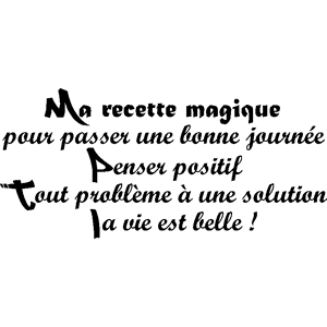 Des stickers muraux citations pour la déco ! Avec les stickers citation et ce sticker Ma recette magique, vous pourrez enfin décorer l'intérieur de votre cuisine à votre guise avec leur aide ! Vos invités ne manqueront pas de surprise du fruit de vos talents culinaires avec ce sticker Ma recette ma
