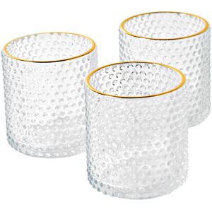 Ces 3 photophores en verre terminés par un liseré doré sont un ajout élégant à toute décoration de maison. Le liseré doré ajoute une touche de glamour et de sophistication à n'importe quelle pièce, créant une ambiance chaleureuse et accueillante. Parfaits pour les fêtes de fin d'année, une soirée romantique ou une soirée entre amis...