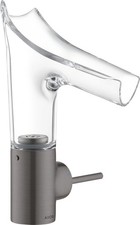 hansgrohe Axor Starck V 140 mitigeur lavabo monocommande Ref.: 12112000 - chromé - positionnement de la poignée à gauche ou à droite - ComfortZone 140 - combinaison de verre et metall - longueur du bec 125 mm long - jet laminaire - débit: 4 l/min, 3 bar - connexion EasyClick entre le corps et le bec - verre lavable au lave-vaisselle - levier easy control joystick - bonde à écoulement libre - bec orientable