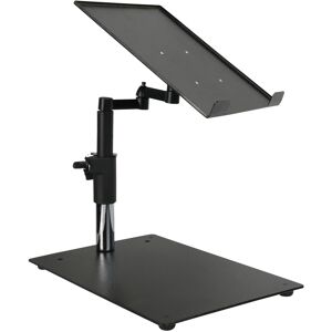 Stand robuste, Bras rotatif à 3 positions, Angle réglable pour la plaque supérieure, Trois positions de stand sur la plaque de base, Pied conçu pour les lecteurs de CD volumineux mais également compatible avec les lecteurs CD à poser dont les dimensions ne dépassent pas 370x320 mm. Son support est fait d’une plaque d’acier de 5 mm qui assure une bonne stabilité. L’angle de position du support peut être réglé en fonction de 3 points de rotation. La hauteur de la perche peut, pour sa part, être réglée sur 3 positions. Ce pied de micro solide et au design élégant est garant d’une flexibilité maximale.Données techniques: Largueur (mm): 325 mm, Longueur (mm): 375 mm, Hauteur Minimum (mm): 330 mm, Hauteur Maximum (mm): 480 mm, Largeur de la console principale: 320 mm, Longueur du bureau principal: 375 mm, Charge Maximum: 15 kg, Matériau: Steel