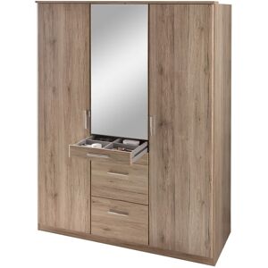 Calicosy Armoire 3 portes dont 1 miroir - L135 cm - Effet Chêne artisan Marron 135x199x58cm