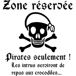 Des stickers pour portes pour votre déco ! Avec les stickers pour portes repérenstant un Sticker porte citation zone réservée, pirates seulement, vous pourrez enfin décorer l'intérieur de votre appartement ou maison à votre guise ! Choisissez une décoration originale pour votre porte avec ce sticke