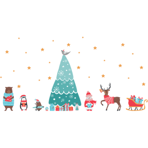 Des stickers Noël pour votre déco ! Avec les stickers muraux Noël multicolore et ce Stickers Noël animaux joyeux, vous pourrez enfin décorer l'intérieur de votre appartement ou maison dans l'esprit de Noël ! Dimensions des stickers Noël: Ce sticker Noël se compose du arbre de Noël, bonhomme de neig
