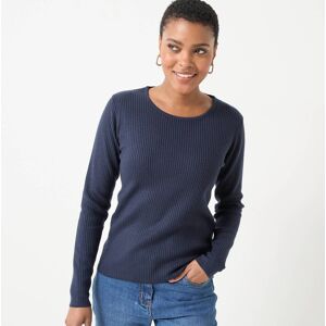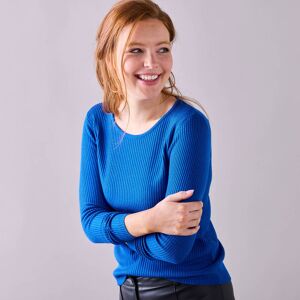 Blancheporte Pull Col Rond Manches Marteau Côtes Anglaises 30% Laine - Homme Bleu M