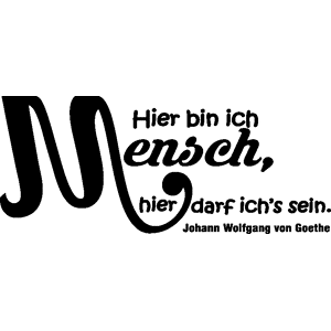 Des stickers muraux citations pour la déco ! Avec les stickers citation et ce Sticker Hier bin ich mensch (J. Wolfgang von Goethe), vous pourrez enfin décorer l'intérieur de votre cuisine à votre guise avec leur aide ! Ce sticker Hier bin ich mensch, hier darft ich's sein.(Johann Wolfgang von Goeth