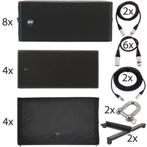 "RCF 8xHDL20-A/4x8008-AS Bundle@+*Offre Bundle comprenant*, 4x RCF SUB 8008-AS@+*Caisson de basses actif haute performance*, 2x haut-parleurs 18"" RCF avec bobine mobile 4"", Design bass-reflex, Amplificateur de puissance 2 canaux classe D avec 2200 Watt RMS / 4400 Watt crête, Réponse en fréquence : 30 - 120 Hz, SPL Max : 137 dB, Soft Limiter, Refroidissement par convection, 8 présélections de fréquence de coupure et 4 présélections cardioïdes, Entrées et sorties powerCON TRUE1 certifiées IP, Entrées et sorties XLR, Matériau du boîtier : contreplaqué multiplex avec vernis polyuréa résistant aux rayures, Filetage M20, Préparé pour le montage de Blue Wheels (disponible en option, article n° #243578#), Dimensions (l x h x p) : 1180 x 550 x 700 mm, Poids : 80 kg, Couleur : noir, 8x RCF HDL 20-A@+*Module Line Array*, 2x haut-parleurs 10"", bobine 2,5"", Moteur aigu RCF 2"" avec bobine 3"", Amplification numérique (classe D): 1400W programme - 700W RMS, SPL max: 135 dB, Réponse en fréquence: 55 Hz - 20 kHz, Fréquence de coupure @ 1 kHz, Dispersion: 100° x 15° (par module), Crans de 2° jusqu'à 15° pour une fixation ajustée, Dimensions: 294 x 705 x 445 mm, Poids: 29 kg, 2x RCF HDL 20 Fly Bar Lite@+*Barre de montage aérien*, Convient pour un maximum de 4 unités RCF HDL 20-A, Livrée avec avec barre empilable, point de soutient et maintien de support, 4x RCF Cover SUB 8008@+*Housse de protection*, Pour RCF SUB 8008-AS, Matériau extérieur: Polyester 600D, Matériau intérieur: Nylon 190T taffetas, Rembourrage en mousse de 10 mm, Fermeture à glissière + scratch à l'avant et à l'arrière, Poids: 3,6 kg, Couleur: Noir, 2x pro snake 17880@+*Câble micro*, Longueur: 10 m, Section de câble: 2 x 0,22 mm², XLR mâle - XLR femelle, Fiches Neutrik, Couleur: Noir, Fabriqué en Allemagne, 2x Stairville Shackle 2,75t long@+*Manille*, Conçue spécialement pour une utilisation avec structure de montage aérienne A10L (#313502#), En acier inoxydable avec ouverture de 31 mm, Diamètre goupille: 16 mm, Charge admissible : 2,75 tonnes, Charge de rupture: 12 tonnes, 2x pro snake 17840@+*Câble micro haut de gamme - 3m*, Section: 2x 0,22 mm², Avec fiches Neutrik mâle/femelle XLR, Couleur: noir, Longueur: 3 mètres, Fabriqué en Allemagne, 6x pro snake 17800@+*Câble micro haut de gamme*, Section: 2x 0,22 mm², Fiches Neutrik Mâle / femelle, Couleur: noir, Longueur: 0,5 m, Fabriqué en Allemagne"