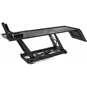 Entretien, réparation ou nettoyage de votre moteur ? Avec le pont élévateur HBM 450 kg, vous n'aurez plus jamais à vous baisser. Installez votre moto sur la table élévatrice et réglez-la à la bonne hauteur à l'aide de la commande au pied. De cette façon, tout est accessible et vous disposez d'une bonne vue d'ensemble de votre travail. Une posture ergonomique assure également la prévention des problèmes d'ordre physique. À propos du pont élévateur hydraulique pour motos HBM 450 kg avec mâchoire de serrage haut de gamme pour la roue avant - NOIR Ce pont élévateur pour moto n'est pas un matériel réservé uniquement aux propriétaires de motos. C'est une plate-forme de travail professionnelle également adaptée aux scooters et aux cyclomoteurs. Outre une fixation pour la roue avant, la table élévatrice est équipée d'un dispositif d'arrêt et d'une protection contre les chutes. Sur le côté, des pédales permettent de procéder au levage du pont et de l'abaisser par petites étapes contrôlées. La plateforme est en tôle striée avec motif larme. La plate-forme dispose d'une rampe amovible qui peut être enlevée lorsque vous intervenez au niveau de l'arrière de la moto ou sur la roue arrière.