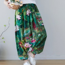 NONE Pantalon de sport imprimé de style ethnique pour femme, élastique, taille haute, confortable, long, mode rétro, léger, danse douce