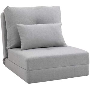 Description:Appréciés par tous, les meubles à double fonction sont particulièrement utiles dans les espaces restreints. La chauffeuse-lit d'HOMCOM ne fait pas exception. Elle offre un espace de couchage confortable ainsi qu'un lit d'appoint pratique pour les invités de passage. Son tissu doux et facile à entretenir, associé à un rembourrage en mousse épaisse, assure un confort d'assise exceptionnel.caractéristique:● Fauteuil transformable à conception 2-en-1 : le coussin de sol peut se transformer en canapé-lit de sol; ● Fauteuil paresseux avec dossier réglable sur 5 niveaux, de 105° à 180°; ● Rembourrage mousse haute densité et deux oreillers pour une excellente expérience d'assise; ● Le petit oreiller est amovible et lavable grâce à une fermeture éclair; ● La surface en lin est facile à nettoyer et à entretenir, idéale toute l'année; ● La structure en métal de fauteuil convertible 1 place assure une haute stabilité et offre un support supplémentaire; ● Vous pouvez le plier et le ranger lorsque vous ne l'utilisez pas.Spécification:● Couleur : gris clair; ● Matériaux : lin, rembourrage mousse, métal; ● Dim. totales : 60l x 80P x 56H cm (canapé de sol), 180L x 60l x 29H cm (canapé-lit); ● Dim. entièrement carrelées : 220L x 60l x 15H cm; ● Dim. assise : 60l x 50P x 22H cm; ● Dim. dossier : 40L x 60l cm (épaisseur : 25 cm); ● Dim. petit coussin : 45L x 25l (épaisseur : 10 cm); ● Charge max. recommandée : 120 kg; ● Réf. : 833-965V80GY;contenu du colis:● 1 x Canapé de sol; ● 1 x Coussin; ● 1 x Manuel d'Assemblage;