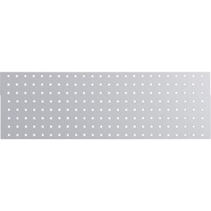 Panneau perforé porte-outils MURAL L.953 x P.30 x H.304 mm gris Ral 7035 > perforations carrées 10 x 10 mm > Entraxe de 38 mm entre perforations > Livré avec un kit de 4 étriers pour fixation murale (A noter : la visserie n'est pas incluse car elle dépend du mur sur lequel sera fixé le panneau) Autre fonction du panneau perforé, il s’adapte sur les établis avec plateau en bois ou en acier : - Peut être utilsé comme panne