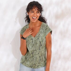 Blancheporte T-shirt Col V Imprimé, Coton Lin - Femme Écru 54