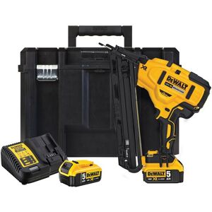 • Dernière génération de moteur Brushless 18V XR Li-Ion. Le cloueur de finition 16Ga offre une technologie de pointe • Le moteur Brushless sans charbon offre une autonomie incomparable • Le design compact et ergonomique rend le cloueur facile d‘utilisation • Contrairement au gaz, l‘éléctrique offre un coûts d‘entretien moins elevé et une performance accrue à basse temperature • Le mode coup par coup permet de fixer de manière précise et le mode rafale permet de fixer 4 clous à la seconde • Les batteries 5Ah sont compatibles avec l‘ensemble du parc de batteries 18V DEWALT Power Tools • Réglage de la profondeur • Système de déblocage du magasin sans outil • La double sécurité permet d‘éviter des tirs accidentels Caractéristiques techniques • Type de batterie: Li-Ion • Voltage: 18 Volts • Capacité de la batterie: 5.0 Ah • Diamètre du clou: 1.8 mm • Inclinaison magasin: 34 ° • Chargement magasin Arrière • Longueur: des clous: 32-63 mm • Capacité magasin: 110 clous • Tir Coup par coup et rafale • Longueur: 338 mm • Largeur: 95 mm • Hauteur: 330 mm • Poids: 2.6 kg • Fonctionnement du cloueur Coup par coup et rafle • Crochet de ceinture intégré Oui • Système de déblocage Sans outil • Température -20 à 50° • Témoins de blocage Oui Livraison standard • Pack de 2 batterie 5Ah 18V XR avec indicateur de charge • Chargeur multi-voltage • Coffret T-STAK>