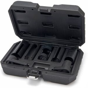 Jeu de clés à douille Wera 4013288173881 Jeu de clés à douille 1/2" Cyclope Métal N° 8100 SC 8 Cliquet entièrement en métal également en acier au chrome-molybdène forgé Finement denté avec un angle de retour particulièrement petit de 5° Extrêmement mince avec levier long pour une bonne accessibilité aux espaces confinés et une transmission de couples élevés Livraison : Dans une boîte textile. Contenu : 1 cliquet métallique massif Zyklop Metal avec levier d'inversion 10 douilles six pans creux 10 ; 11 ; 12 ; 13 ; 14 ; 15 ; 16 ; 17 ; 18 ; 19 mm 4 embouts pour vis six pans creux 5 ; 6 ; 8 ; 10 mm 2 embouts pour vis Phillips PH 2 ; PH 38 Embouts pour vis TORX® T 20 ; T 25 ; T 27 ; T 30 ; T 40 ; T 45 ; T 50 ; T 55 1 adaptateur d'embouts avec mandrin à changement rapide 1 rallonge avec manchon à rotation rapide 250 mm 1 rallonge à cardan Wobble 52 mm