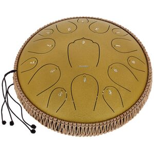 "Thomann Tongue Drum 13"" Lotus G, Tongue drum, Diamètre: 13"" (330 mm), 15 notes: Fa#, Sol, La, Si, Do#, Ré, Mi, Fa#, Sol, La, Si, Do#, Ré, Mi, Fa#, Ré diatonique majeur, Laçage en corde de chanvre, Couleur: Or, Housse, maillets, onglets de doigts et autocollants numérotés incl."