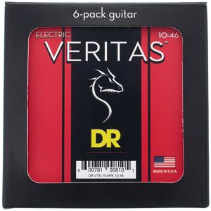 DR Strings Veritas VTE-10 6-Pack, Set of Strings for Electric Guitar, Set of six complete sets of strings, Gauges: .010, .013, .017, .026w, .036w, .046w, Medium tension, Quantum nickel, Round wound, Round core, Includes three additional XENON Power-Plain strings, Made in USA