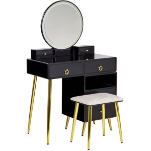 Ajoutez une touche glamour à votre intérieur avec cette charmante coiffeuse. Sa forme ornementale et ses poignées en forme de cristal sont de véritables accroche-regards qui ne manqueront pas d'embellir toute chambre à coucher ou tout salon. Le miroir en forme de cœur est réglable verticalement, vous pouvez donc le placer à différents angles pour faciliter votre routine. La pièce est livrée avec des pieds en bois massif, 4 tiroirs pratiques, où vous pouvez organiser tous les produits de beauté et un tabouret confortable.