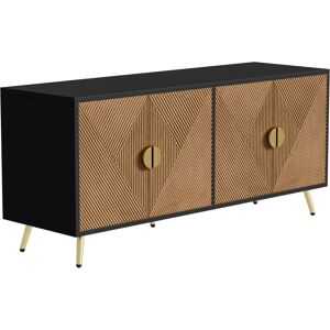Urban Meuble Buffet élégant 4 portes effet bois brossé et noir Beige 160x75x40cm