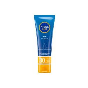 NIVEA SUN UV FACE, 50 ml, Protection contre le rayonnement solaire pour femme, Protégez votre peau du vieillissement prématuré et des dommages provoqués par les rayons solaires. La peau délicate du visage est beaucoup plus sensible que celle du reste du corps. Elle est de plus exposée aux rayons du soleil tout au long de l’année – il est donc important de ne pas sous-estimer sa protection. Le produit solaire NIVEA SUN UV FACE protège efficacement votre peau des rayons UV en prévenant les coups de soleil et les taches pigmentaires tout en empêchant la perte d’élasticité, la perte de collagène et d’autres symptômes du vieillissement cutané. Le produit : protège la peau contre les rayons UVA et UVB protège la peau contre le vieillissement prématuré empêche la brillance indésirable s’absorbe facilement Mode d’emploi : Appliquez sur une peau propre avant l’exposition au soleil.