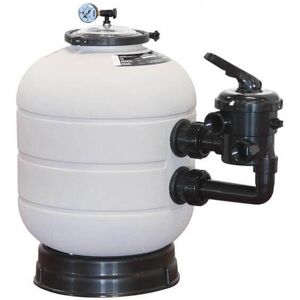 Filtre à sable pour piscine Astral Millenium Side diamètre 430 mm pour débit de filtration jusqu'à 7 m3/h : Diamètre de la cuve : 430 mm Débit maximum : 7 m3/h Résine plastique robuste et inaltérable par agents chimiques Vanne 6 voies 11/2 SIDE (latérale) Équipé avec manomètre, purge d'air et vidange Livré sans raccords union Fabriqué en Europe Garantie : 2 ans
