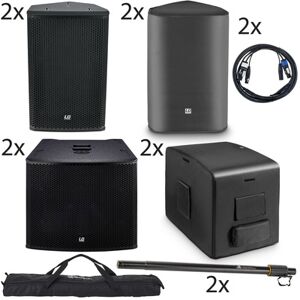 "LD Systems Stinger 12/Sub18 Power Bundle@+*Offre Bundle comprenant*, 2x LD Systems Stinger Sub 18A G3@+*Caisson de basse actif*, Caisson de basse actif Bass-Reflex avec haut-parleur 18"", DSP intégré, Amplificateur de puissance intégré de classe D, Puissance: 800 Watt RMS / 1600 Watt crête, Niveau de pression acoustique max.: 135 dB, Réponse en fréquence: 35 - 200 Hz, DSP intégré avec les circuits de protection suivants: limiteur, surchauffe, surtension, surintensité, Coupe-haut commutable à 80 Hz, 100 Hz et 120 Hz, Mode cardioïde commutable, Panneau de connexion avec 2 entrées combinées micro/ligne, 2 sorties XLR, entrée et sortie Power Twist, Boîtier en contreplaqué de 18 mm, Taraudage M20 pour tube de liaison, Dimensions: 677 x 547 x 740 mm, Poids: 42,6 kg, Housse de protection adaptée #409338# optionnelle non fournie, Plateau à roulettes adapté #409340# optionnel non fourni, 2x LD Systems Stinger 12A G3@+*Enceinte large bande active 12"" + 1""*, Possibilité de bain de pieds, Avec DSP interne, Amplificateur interne de classe D, Puissance: 500 Watt RMS (1000 Watt crête), SPL max: 131 dB, Réponse en fréquence: 58 - 20.000 Hz, DSP avec les protections suivantes: limiteur multibande, surcharge et surchauffe, Modules commutables: Full-Range (large bande), Satellite, Moniteur, Plat, Tweeter BMS, Dispoersion pavillonnaire: 90° x 50°, Panneau de connexion avec 2x entrées combo niveau micro / ligne, 1x sortie XL, Connecteur d'alimentation Power Twist, Enceinte en contreplaqué, Montage sur pied 36 mm double inclinaison, Montage aérien M10, Dimensions: 390 x 627 x 377 mm, Poids: 20,6 kg, 2x Sommer Cable Monolith1 Power Twist/XLR 2,5m@+*Câble combiné Power Twist / XLR - 5m*, Câble combiné audio + puissance, Section puissance: 3 x 1,5 mm², Convient aussi pour DMX 512, Fiches XLR mâle / entrée Power Twist vers XLR femelle / Sortie Power Twist, Longueur: 2,5 mètres, 2x LD Systems Stinger Sub 18 G3 PC@+*Housse de protection*, Convient pour caisson de basses LD Systems Stinger Sub 18 G3, Rembourrage épais de 8 mm, Dimensions (L x H x P): 576 x 470 x 625 mm, Poids: 1,5 kg, Couleur: noir, 2x LD Systems Stinger 12 G3 PC@+*Housse de protection en nylon*, Convient pour enceinte LD Systems Stinger 12 G3, Rembourrage épais de 8 mm, Dimensions (L x H x P) : 600 x 420 x 400 mm, Poids : 0,7 kg, Couleur : noir, Roadworx Slim Line Speaker Stand Bag@+*Sac de transport*, Pour 2 supports d'enceinte Roadworx Slim Line, Rembourrage en mousse, En Cordura (nylon robuste, résistant à l'abrasion et hydrofuge), 2 poignées, Pieds en plastique, Dimensions extérieures (L x l x H): 1000 x 200 x 150 mm, Dimensions intérieures (L x l x H): 940 x 165 x 85 mm, Poids: 0,85 kg, Couleur: Noir, 2x Roadworx Multi Pole@+*Tube de liaison pour enceinte*, Longueur réglable d'env. 880 à 1360 mm, Goupille de sécurité, Diamètre de l'extrémité supérieure: 35 mm, Extrémité inférieure adaptée aux supports avec embase de 35 mm ou M20, Poids: 1,2 kg, Couleur: Noir"