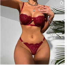 Ensemble de lingerie en dentelle pour hommes, haut de soutien-gorge, culotte à jupe, sous-vêtements transparents, costume cosplay, aussi trempé, gay, 2 pièces