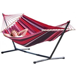 Le hamac Lambada représente l'alternative la plus avantageuse à Barbados & Co. : Il n'est que légèrement plus petit, et nous l'avons tissé avec une épaisseur réduite de 20% : Ainsi, le hamac Lambada est au top au niveau du confort et parfait pour une personne d'un poids inférieur à 150 kg. Associé à un support métallique de très bonne facture pour un set réussi.