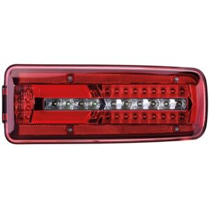 Article complémentaire / info complémentaire 2: Comptabilité électromagnétique (totale EMV), avec contrôle de défaillance des clignotants, avec vis/boulons. Couleur du carter: noir. Couleur du voyant: limpide, rouge. Côté d'assemblage: Gauche. Fabricant: HELLA. Fonction feux: avec feu de clignotant (LED), avec feu-stop(LED), avec feu de la plaque d'immatriculation (LED), avec feu de brouillard arrière (LED), avec feu-marche arrière (LED), avec feu d'éclairage arrière, avec feu arrière (LED), avec feu de marquage des côtés (LED), avec lumière de contours (LED). Hauteur [mm]: 92. Id de la version de la fiche: DIN, DIN Bajonett. Index: 2VD012 381-011. Largeur [mm]: 159. Longueur [mm]: 404. Longueur de câble [mm]: 500. Marque de conformité: ADR/GGVS;ECE;EMV, E24 5884, ECE, CCC. Modèle de feu: LED. Nombre de fonctions d'éclairage: 9. Nombre de vis: 2. Nombre des leds: 53. Nombres de pôles: 7. Numéro d'article en paire: 2VP 012 381-021, 2VP 0...