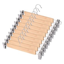 Paquet de 10 cintres pour jupes en bois avec Clips réglables, cintre pour pantalons antidérapant, finition naturelle, cintres pour pantalons en bois de Lotus 360 °