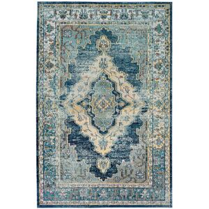 L'élégance d'antan devient un décor chic, à la mode du métro, dans ce tapis de zone au style contemporain et à la finition design. Les médaillons traditionnels et les fleurs, colorés dans un bleu marine et une crème douce, sont patinés à l'ancienne pour un look classique qui est maintenant complet. Le tissage est réalisé avec des fils synthétiques doux et faciles à entretenir pour une brillance durable.