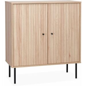 Les + produitDécor bois rainuré Détails en métal mat noir2 portes et 1 étagèreLa collection BRAGA au design rectangulaire a été imaginée dans le but d’apporter une touche contemporaine à vos intérieurs. Avec leur matière en décor bois naturel et leurs détails en métal noir mat : table basse, buffet, table de chevets, commodes, meubles TV s’accommoderont parfaitement à votre intérieur en y rajoutant modernité et authenticité. Un style contemporain pour votre buffet Ce buffet de rangement deviendra la pièce maîtresse de votre maison grâce à son design contemporain. Le décor en bois rainuré et les détails en métal noir mat lui confèrent un aspect élégant qui s'harmonisera avec n'importe quelle décoration. Son design simple et élégant fait de ce buffet une pièce à part entière. Le plateau supérieur est parfait pour exposer des plantes ou d'autres objets décoratifs. Pratique et fonctionnel Ce buffet est parfait pour les petits et grands espaces, et peut facilement être placé dans votre couloir, votre salon, votre salle à manger ou votre chambre. Ses deux niveaux vous permettront d'organiser votre vaisselle ou vos documents importants comme vous le souhaitez, et ses deux portes vous permettront de tout cacher. Les 4 pieds aux détails modernes sont stables et fiables.