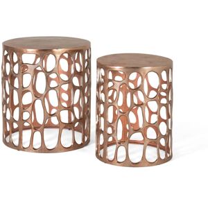 Lot de 2 tables basses offre un mélange élégant de métal noir et de finition cuivre antique, ajoutant une touche de sophistication à votre espace. La grande table mesure 47 x 81 cm de diamètre, tandis que la petite table mesure 42 x 70 cm de diamètre, offrant des options polyvalentes pour votre aménagement intérieur. Pesant 25 kg au total, ces tables sont soigneusement emballées dans une boîte de dimensions 52x85x85 cm, prêtes à être utilisées sans nécessiter d'assemblage. Étant donné qu'il s'agit d'un meuble en bois naturel et fabriqué à la main, il peut conserver ses nœuds et ses veines d'origine et peut donc présenter des différences en ce qui concerne la couleur.