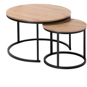 Caractéristiques produit : Table basse ronde 2 niveaux.Panneaux de particules mélaminé.Épaisseur : 25 mm.Pieds et montants en charme massif.Diamètre : 70 cm.Dimensions produit : Longueur 70 cm x Largeur 70 cm x Hauteur 43,7 cm - Poids net 13,95 kg.Dimensions colis : Colis n°1 : Longueur 75 cm x Profondeur 75 cm x Hauteur 16 cm - Poids brut 15 kg.Colis n°2 : Longueur 15 cm x Profondeur 30 cm x Hauteur 10 cm - Poids brut 1,5 kg.Poids brut total : 16,5 kg.