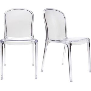 Avec les chaises ISLAND, faites place à la fantaisie !Composées de polycarbonate, un matériau résistant et facile d'entretien, ces chaises transparentes d'extérieur et d'intérieur séduisent par leur look épuré ! Formes douces et arrondies, design ludique, parfaites pour créer une ambiance lumineuse autour de vos tablées, ces confortables chaises de salle à manger apporteront de la personnalité à votre coin repas autant sur une terrasse que dans un salon-cuisine! Pour former le combo parfait, associez ces chaises design transparentes à une table blanche ou en bois.Fonctionnelles et légères, ces chaises empilables vous permettront d'aménager votre coin repas au gré du nombre de convives sans encombrer vos espaces de rangement. Une aubaine pour les maisonnées ou chaque m² compte !Chaises design transparentes empilables intérieur - extérieur vendues par lot de 2.