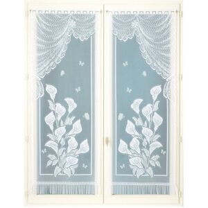 Vitrage droit maille dentelle motif arums - la paire - Blancheporte Blanc Paire rideaux : largeur 60 x hauteur 120cm