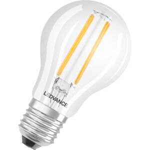 Ampoule à filament forme standard avec technologie Wi-Fi. Caractéristiques produit: Contrôlable via l'application LEDVANCE SMART+ WiFi (avec minimum Android™? 4.4 ou iOS 9.0), Contrôlable via Google Assistant et Amazon Alexa possible, Protocole réseau: WiFi, Gradable, Durée de vie: jusqu'à 15 000 h, Température de couleur: blanc chaud (2 700 K), Avantages produits: Contrôle sans fil via l'application, Facile à installer et à utiliser, Ne contient pas de mercure, Domaines d'application: Éclairage général, Intérieurs résidentiels, Professionnels (hôtels, bars, boutiques, etc.), Utilisation en extérieur, uniquement dans des luminaires appropriés, Données techniques: Longueur: 105 mm, Largeur: 60 mm, Diamètre: 60 mm, Poids net: 31 g, Socle: E27, Tension nominale: 240 V, Courant nominal: 50 mA, Puissance de mesure: 6 W, Consommation d'énergie: 6 kWh/1000, Température de couleur: 2700 K, Couleur de la lumière: Blanc chaud, Angle de rayonnement: 300 °, Faisceau lumineux: 806 lm, Restitution des couleurs: 80 CRI, Durée de vie: 15000 h, Cycles de fonctionnement: 100000, Classe d'efficacité énergétique: E, Avec variateur de lumière: Oui, EAN: 4058075528239