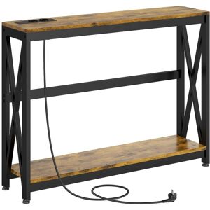 Description:La console HOMCOM, avec son style industriel, offre une large surface et des prises intégrées (2 électriques, 2 USB), idéale pour les intérieurs modernes. Fabriquée en panneaux de particules et acier, elle est parfaite pour l'entrée ou le salon.caractéristique:● 2 stations de recharge avec 2 prises de courant et 2 prises USB; ● Console d'entrée à 2 niveaux pour disposer de beaucoup d'espace; ● Table de couloir au design industriel idéal pour le salon et l'entrée; ● Structure en acier et en bois aggloméré pour une longue durabilité; ● Sections latérales en X pour rendre la structure plus stable; ● Pieds réglables pour maintenir la console équilibrée sur des surfaces irrégulières; ● Montage nécessaire;Spécification:● Couleur : marron, noir; ● Matériaux : acier, panneau de particules; ● Dim. totales : 100L x 24P x 75H cm; ● Dim. plateau inférieur : 95L x 23P x 60,5H cm; ● Entrée : AC 220-250V 50/60Hz, 15A; ● Puissance : 2400W; ● Sortie USB : DC 5V, 2A; ● Charge max. recommandée : 60 kg (totale), 30 kg (plateau supérieur), 30 kg (plateau inférieur); ● Réf. : 837-463V90RB;contenu du colis:1 x Console d'Entrée; 1 x Manuel d'Assemblage;