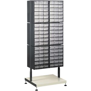 Rack de stockage fixe pour module bloc-tiroirs Livré sans module. Conception métallique tubulaire. Coloris anthracite. Pieds réglables en hauteur. Ce support peut devenir mobile par l’adjonction d’un jeu de roulettes en option. Modules au choix : 36A / 6F / 18C / 28 ACF Conçu pour 12 modules en double face. Dimensions : > Hors tout : H. 1600 x l. 620 x P. 430 mm > Poids : 15.1 kg.