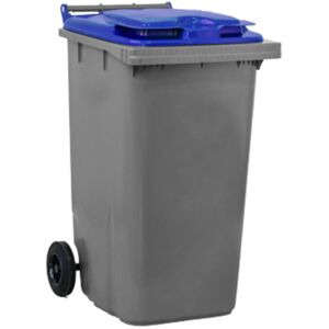 Poubelle collective idéal pour le tri sélectif. Bac roulant de 240 L et couvercle en PEHD recyclé et recyclable. Ces conteneurs poubelles sont résistant aux chocs, aux UV et aux conditions climatiques. Coloris standard : Anthracite (100% de matière recyclée). Les 2 roues ont un bandage caoutchouc...