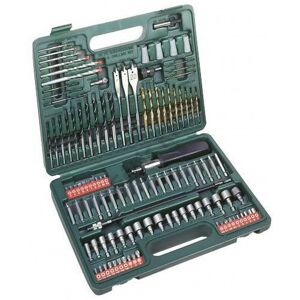 112-piece set consisting of: 1x PH 0, 1, 2, 3 1x PZ 1, 2, 3 1x Torx 10, 15, 20, 25, 27, 30, 40 1x Zeskant 2, 3, 4, 5, 6, 7 1x Gleuf 3, 4, 5, 6, 7, 8 1x Robertson 1, 2, 3 1x PZ 1, 3 Length 50 mm 2x PZ 2 Length 50 mm 1x Torx 10, 15, 20 Lengte 50 mm 1x Hexagon 2, 3, 4, 5, 6 Length 50 mm 1x Gleuf 6, 8, 10, 12 lengths 50 mm 1x Robertson 1, 2, 3 Lengte 50 mm 1x Magnetic Bit Holder with quick change system 1x 1/4 Flexible shank Length 280 mm 1x 1/4" Bit Holder Screwdriver 4x Screw holder 1x 1/4" Countersink 1x Metaal 1.5, 2, 2.5, 3, 3.2, 3.5, 4, 4.5, 4.8, 5, 5.5, 6, 6.5 mm 1x Hout 3, 3.2, 3.5, 4, 4.5, 4.8, 5, 5.5, 6, 6.5, 7, 7.5, 8 mm 1x Steen 3, 4, 5, 6, 8, 10 mm 1x Speed drills 10, 12, 20 mm 1x 1/4" dope bag 5, 6, 7, 8, 9, 10, 11, 12, 13 mm 1x 3/16", 7/32", 1/4", 9/32", 5/16", 11/32", 3/8", 7/16", 1/2" Photo d'illustration>