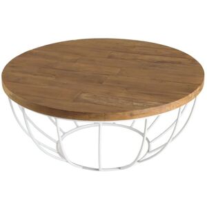 Table basse coque ronde 80x80cm plateau teck recyclé piétement métal blanc. Dimensions : 80 x 80 x 35 cm. Article en Teck recyclé et Métal. Cet article est composé de bois recyclé ! Le bois recyclé est un bois récupéré de vieilles charpentes, de coques de bateaux ou tout bois de récupération ayant déjà eu une longue vie. C'est ce qui lui donne cet aspect vieilli et authentique avec ses imperfections qui font tout son charme. Acquérir du bois recyclé est une initiative écoresponsable qui permet de lutter contre la déforestation. Laissez-vous tenter par le charme de cette table basse coque et par son plateau en teck recyclé. Cette table basse, sera idéal dans votre intérieur pour apporter une ambiance chaleureuse à votre espace de vie grâce à son métal de couleur blanche.