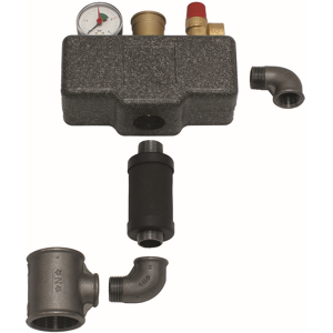 Groupe de sécurité chaudière Vaillant ecoVIT 0020060830 complètement pré-assemblé avec manomètre Purgeur d'air (les deux avec dispositif d'arrêt automatique) Robinet et soupape de sécurité KFE 3 bar jusqu'à 65 kW rp 3/4" avec tuyau de raccordement et isolation thermique