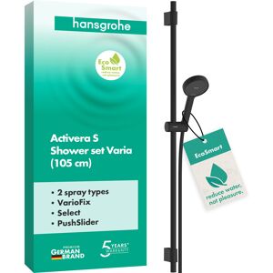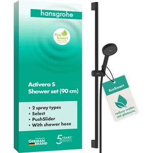 hansgrohe Activera Select S ensemble de douche 28045000 La douche pour tous : la douche Activera S de Hansgrohe est harmonieusement conçue et respire la sécurité Pommeau de douche avec 2 types de jets fantastiques : jet Rain activant et jet ImpactRain massant EcoSmart+ : Nécessite max. 6 l/min (3 bar) grâce à un limiteur de débit flexible Les buses adaptables et élastiques de la pomme de douche délivrent un jet de douche puissant (FlexPower) Barre de douche Unica originale : avec une longueur de 0,65 m pour un réglage flexible de la hauteur sur une large plage Facile à installer : le tuyau de douche s'adapte à n'importe quel raccordement d'eau standard Commutation pratique : sélectionnez rapidement et facilement le type de jet souhaité en appuyant sur un bouton (Select) Garantie volontaire du fabricant de 5 ans sur un produit fabriqué selon les normes de qualité les plus élevées D'une seule main : le support de douche peut être réglé facilement à l'aide d'un bouton (PushSlider) Moins de calcaire – plus de temps pour se doucher : les dépôts sur les buses sont automatiquement rincés (QuickClean+) Douche plus détendue : un accessoire spécial évite la torsion gênante du flexible de douche Contenu de la livraison : joint de tamis Instructions de montage Matériel de fixation ensemble de douche Des matériaux de première qualité sont utilisés dans tous les composants – pour plus de sécurité et de durabilité dans la maison Hansgrohe depuis 1901 – la marque premium pour des produits de salle de bain et de cuisine fiables Rafraîchissant et différent : Activera S économise l'eau tout en offrant un plaisir de douche complet Votre nouvel ensemble de douche hansgrohe Activera S 95 EcoSmart+ avec barre de douche (0,65 m) est un véritable miracle d'eau ! Issu des recherches hansgrohe en matière de jets, il propose des idées astucieuses pour une douche puissante et économe en eau. Le jet Rain activant vous réveille le matin et vous revigore le soir. Le jet ImpactRain vous enchante par son jet envoûtant et vous offre une expérience de douche intense. Et tout cela avec une consommation d'eau réduite : grâce à un limiteur de débit variable, hansgrohe EcoSmart+ réduit le débit à 6 l/min maximum, même en cas de forte pression. Activera S impressionne par son jet de douche étonnamment puissant. Les jets flexibles s'adaptent de manière dynamique et offrent un plaisir de douche intense (hansgrohe FlexPower). Profitez d'un plaisir de l'eau énergisant, jour après jour. Il est beau de se sentir bien Design tactile : la poignée ergonomique du pommeau de douche tient confortablement dans la main Commutation pratique : sélectionnez rapidement et facilement le type de jet souhaité en appuyant sur un bouton (Select) La forme moderne impressionne par son design harmonieux et rayonne de sécurité Une barre de douche originale hansgrohe Unica (0,65 m) offre beaucoup de confort PushSlider : Le support de douche peut être tourné et...