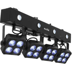 Eurolite AKKU KLS-180 Compact Light Set, Barre LED DMX complète avec batterie rechargeable, Traverse avec unité de contrôle DMX et manchon de trépied intégrés, Projecteurs pivotants et inclinables, Autonomie jusqu'à 20 heures selon le programme utilisé, Mélange de couleurs en continu, Changement de couleur réglable, Fondu de couleur réglable, Gradateur électronique, Mode économie d'énergie, Effet stroboscopique, Programmes de spectacles intégrés, Sélection directe de 20 couleurs, Refroidissement passif par convection, Modes de contrôle: autonome, musique via le microphone intégré, DMX, télécommande infrarouge, fonction maître/esclave, QuickDMX via USB (optionnel non fourni), Fonctionnement sans scintillement, Angle de faisceau: 9°, Ecran LED à 4 chiffres et 7 segments, Fonctionnement presque silencieux, Entrée/sortie secteur pour une connexion jusqu'à 8 appareils, Utilisation possible sur trépied, posé ou suspendu, Sans fil, Flexible et polyvalent, Chargement automatique intégré et affichage du statut, Alimentation: 100-240 V AC, 50/60 Hz, Indice de protection: IP20, Connexion électrique pour batterie rechargeable, Entrée/sortie d'alimentation sur prises CEI, Batterie lithium-ion 22,2 V, 4400 mAh, 97,68 Wh (autonomie jusqu'à 20 h selon le programme utilisé / temps de charge 5 h), Modes DMX: 3, 4, 8, 21 canaux, Entrée/sortie DMX sur XLR 3 broches, Dimensions (L x P x H): 61 x 15 x 27 cm, Poids: 5,9 kg@+*Contenu de la livraison:*, Effet de lumière, Manuel d'utilisation, Câble d'alimentation avec prise avec mise à la terre, Télécommande, Batterie, Sac de transport