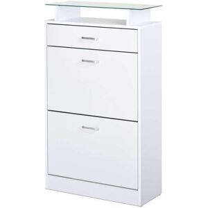 Description:Mettez de l'ordre dans vos chaussures éparpillées avec le meuble chaussures design HOMCOM. Design élégant et moderne, cette petite armoire à chaussures entrée s'intègre parfaitement à différents types de meubles. Chaque porte est équipée d'une étagère interne réglable, pour s'adapter à la pointure des chaussures à ranger. Profitez de ce meuble de rangement chaussures pratique et peu encombrant pour garder vos chaussures toujours en ordre !caractéristique:● Style moderne qui s'adapte à différents environnements; ● Structure avec panneaux de particules; ● 2 portes équipées d'une étagère intérieure réglable sur 3 niveaux; ● Système anti-basculement; ● Étagère supérieure pouvant servir à placer tous vos objets; ● Assemblage nécessaireSpécification:● Couleurs : gris et blanc; ● Matériaux : panneau de particules classe E1; ● Dim. totales : 62,5l x 26P x 81H cm; ● Dim. porte abattante : 58,8L x 35,8H cm; ● Charge max. recomandée : 5 kg (chaque porte); ● Réf. : 837-131contenu du colis:1 x Meuble à chaussures; 1 x Manuel de montage