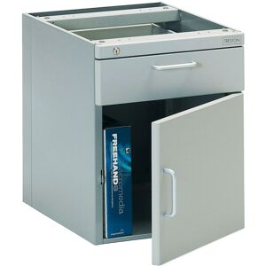 Caisson métallique pour table de travail modèle TP ou TPH avec > 1 tiroir H. 100 mm s'ouvrant à 75% (charge 20kg). Fabrication du châssis en acier finition peinture époxy (Coloris Gris) Façades de tiroirs en mélaminée avec une poignée aluminium. Dimensions : > Hors tout : H.140 x L.370 x P.460 mm > Poids :9 kg