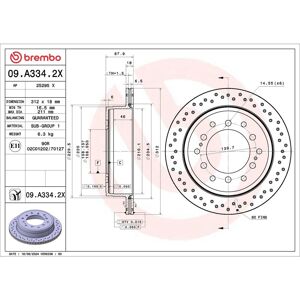 Diamètre du centrage [mm]: 108. Diamètre extérieur [mm]: 312. Fabricant: BREMBO. Hauteur [mm]: 67,9. Index: 09.A334.2X. Nombre de trous: 6. Numéro du fabricant: 09.A334.2X. Surface: revêtu. Type de disque de frein: perforé/ventilé de l'intérieur. Épaisseur du disque de frein [mm]: 18. Épaisseur minimum [mm]: 16,5.